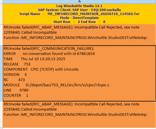 RfcInvoke failed(RFC_ABAP_MESSAGE): Incompatible Call Rejected, see note 2295840; Called Incompatible Function :ME_INFORECORD_MAINTAINCPROG:Winshuttle StudioDEST:vhfete4qc