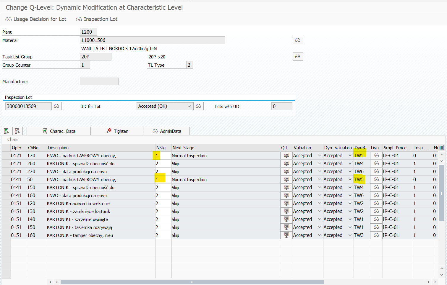I'm trying to create a script that update the NStg (Next Stage) field with the same DynR (Modification Rule).
