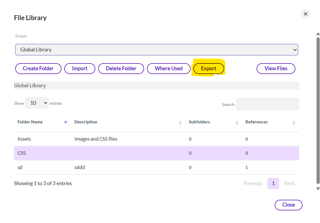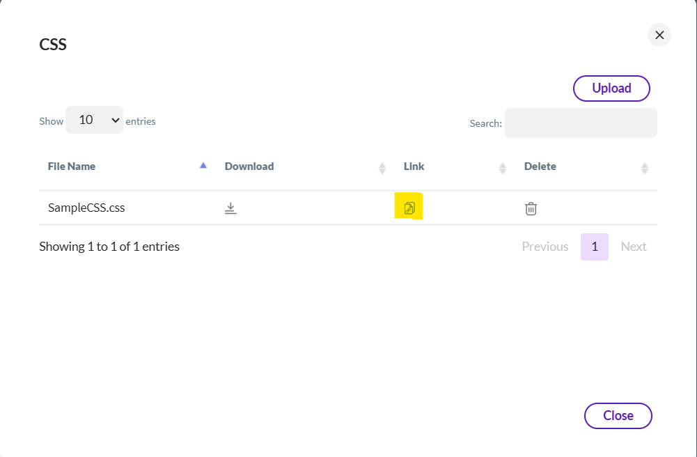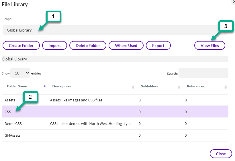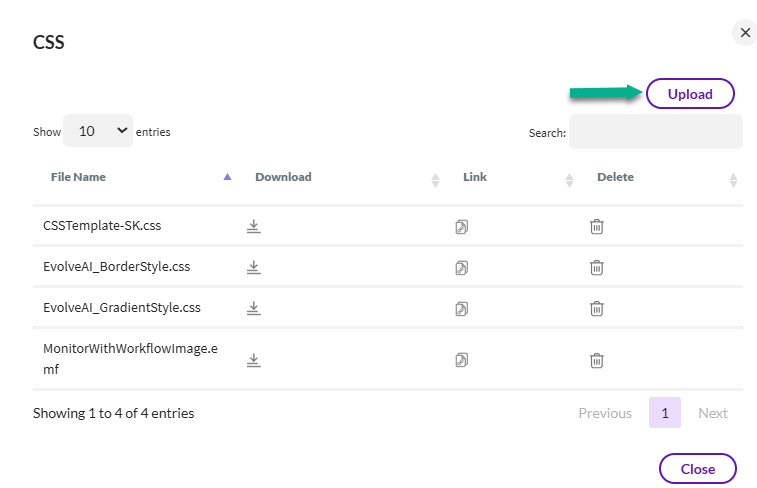 Before you can use a CSS file in Evolve, you need to add it to a file library.