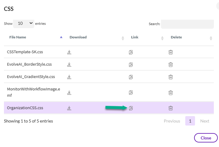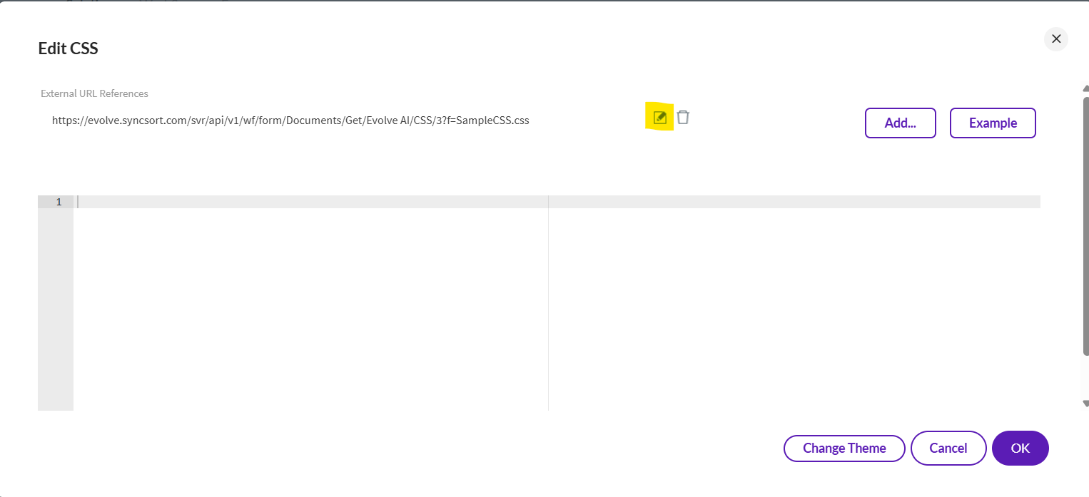 - If you want to add the CSS to an Evolve form click the link button next to the CSS.