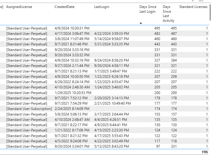 Having this in place one can quickly check for possible usage against License and even see if the license has been reassigned and how usage changes are reflected.