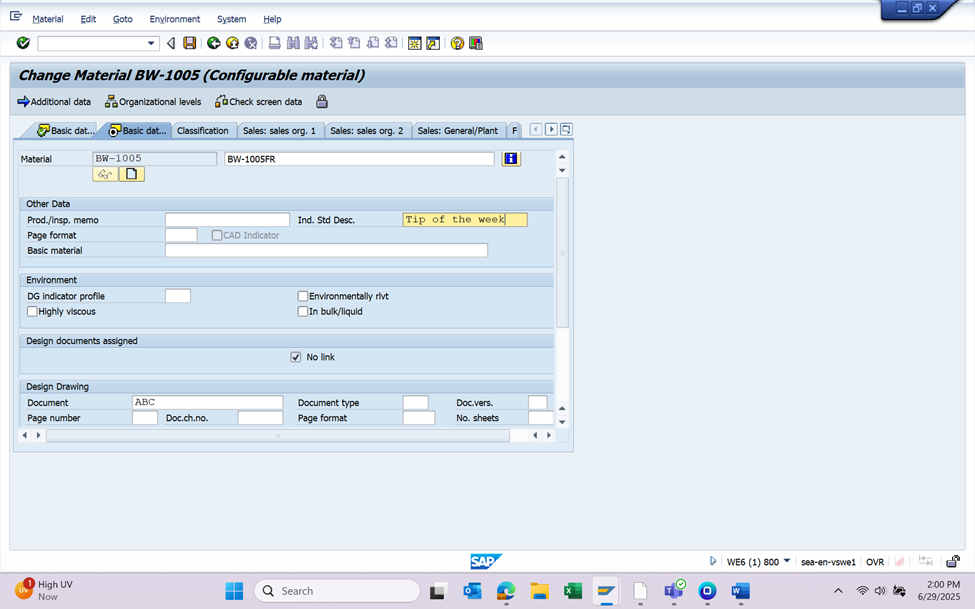 - Check the Output box for each additional field that you want to download data from SAP.