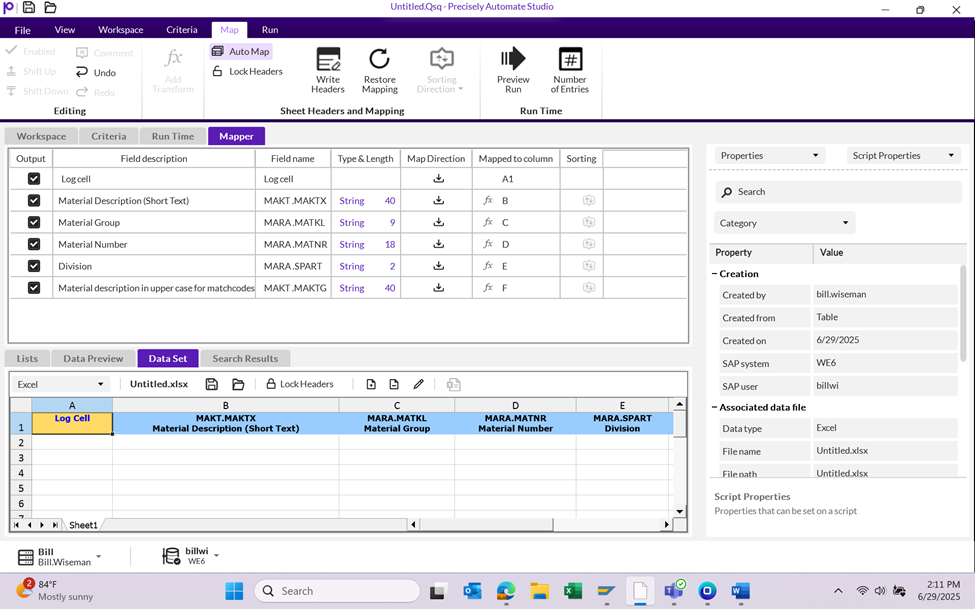 Once complete, Map the query, in this instance I used the AutoMap function