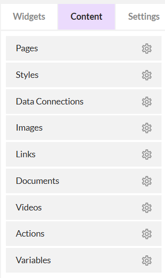 - Next, I move to the Content tab. This is where I upload all the content that will be displayed on my portal. See the Content online help for more information. There are many different Content types you can add: