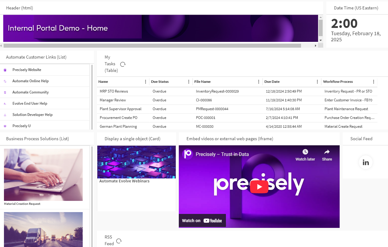 - HTML - Embed HTML into your portal if you want specialized content. Example:
