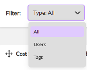 The first filter allows you to filter by one or more users or tags (tags are assigned to users and can also be created where they are assigned):