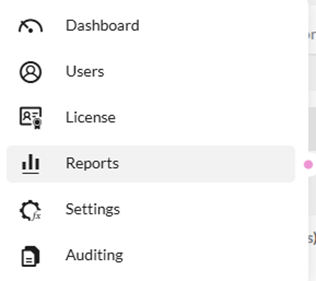 When you log in to Studio Administrator, select Reports in the menu pane on the left:
