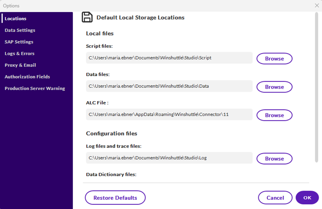 Update the locations to where you want to have your scripts and data files saved. This will also be the default location when opening scripts and data files. When you click on Browse from the open page, it will open to the script location you specify in the options: