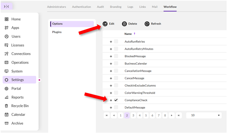 - Go to Settings -> Workflow -> Options