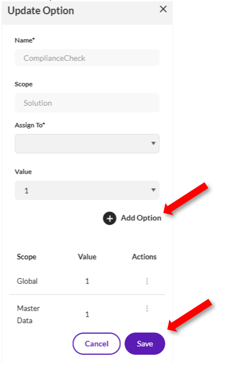 - Update the value based on your compliance requirement and click "Add Option" button.