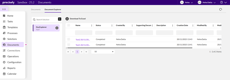 Document Explorer in Automate Evolve is to give users a structured, searchable, and filterable way to track every document as it moves through a workflow. It exists to solve a visibility and control problem: once forms or Excel files are submitted, teams need a centralized place to monitor progress, check statuses, and review details.