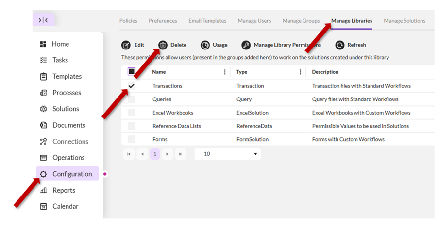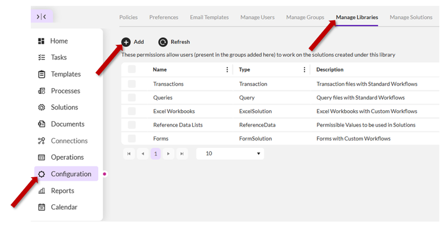 - Navigate to Reference Data App → Configuration -> Manage Libraries.