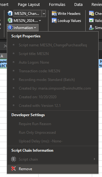 To make changes to a published script, users must remove the script from the Excel file and republish.