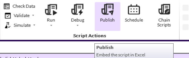 When you publish a script in Studio, you embed the script in the Excel data file. This allows Runners to run the script directly from the Excel worksheet using the Automate Studio Excel Add-in.