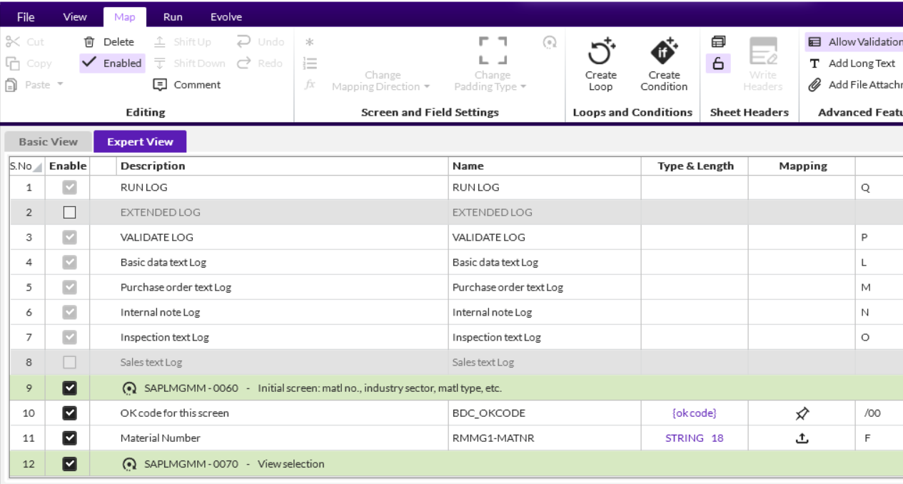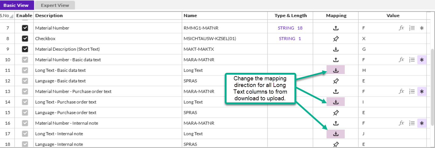 In last week's Studio script, we used Studio's Add Long Text feature to download data from SAP. In that script we uploaded the Material Number and Language fields and downloaded text related to the materials. We can use that same script to now upload text to SAP simply by changing the mapping from download to upload in the Studio script. Using both scripts together provides the capabilities we like to call "round trip" where you download data to Excel, update the data, and then upload it back to SAP.