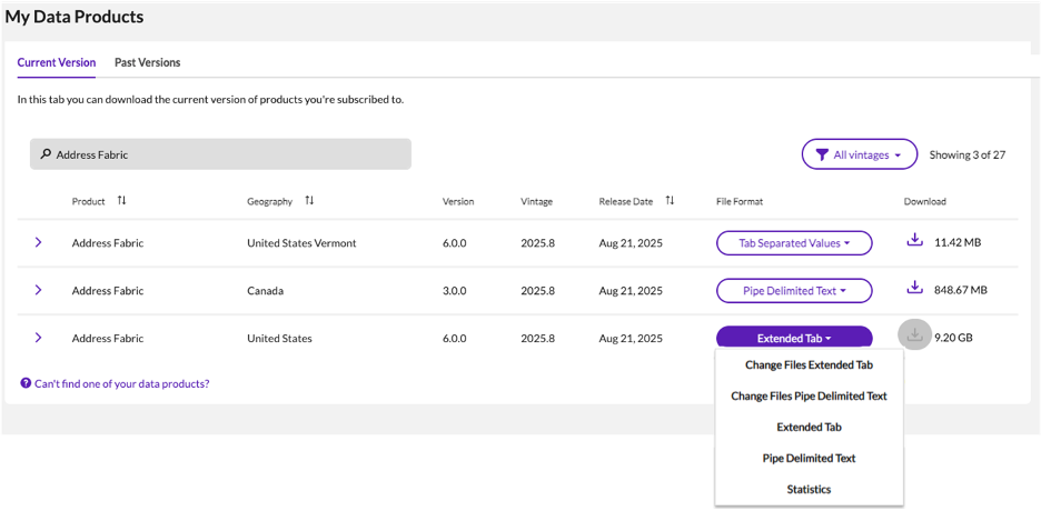 - You may continue to use a previous version of USA Address Fabric prior to the March 2026 release in the legacy data schema format, or