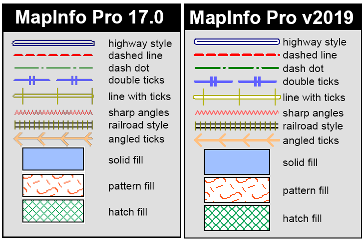 MapInfo Pro v2019 will support all the existing line and region styles.