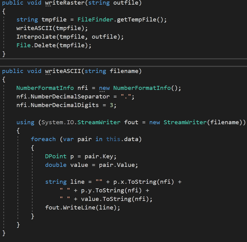 InterpolateMinimumCurvature method, I first need to write my data to a file, so I write an ascii file with the data and then call the interpolation method.