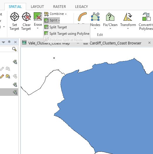 7. use the tool to select "Split Target Using Polyline"