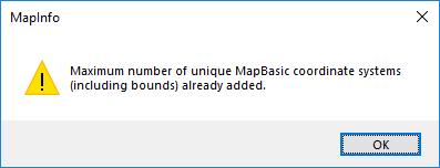 Max number of unique MapBasic coordinate systems message